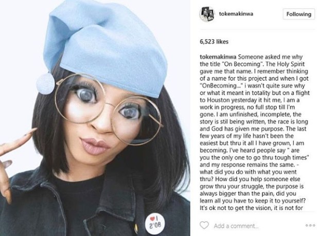 Nigerian OAP, Toke Makinwa, whose best-selling book “On Becoming”, has been at the center of several controversies and also got her in court, has revealed why she gave her book that name.
