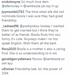 Nigerians are actually insinuating that the friendship between Big Brother Naija winner, Efe Ejeba and the first runner up, Bisola, is rare.