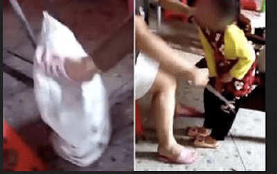 A little girl is stuffed into a sack and tortured by her own grandmother and aunt in a sickening footage. Police have launched an investigation after the shocking footage, which has been viewed more than 10million times, came to light.