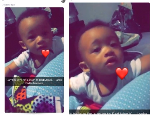 The proud mum who got married to her heartthrob, Rotimi last year took to Snapchat to share some lovely cute photos of her son. ‘Cant believe am a mum to Bad Man K’ she captioned.