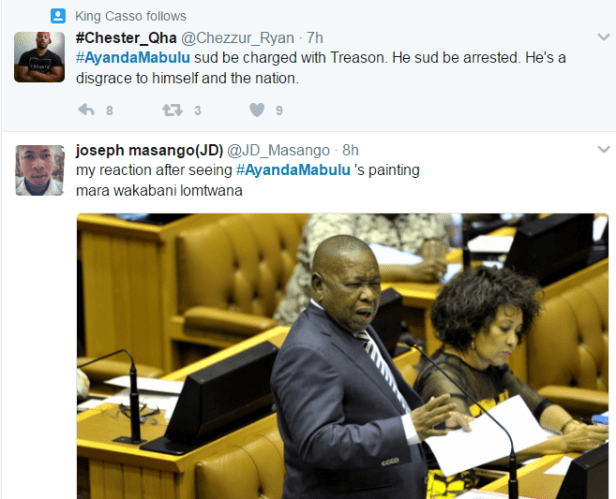 Mabulu is no stranger to controversy. He courted trouble last year when he painted Zuma performing a sexual act with controversial businessman Atul Gupta in a cockpit of an aeroplane.