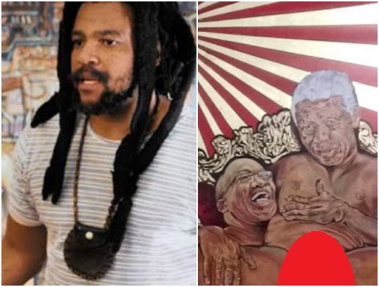 The latest painting by controversial artist, Ayanda Mabulu, which portrays President Jacob Zuma in a sexual act with the late former President Nelson Mandela emerged on Thursday and caused a stir on social media.