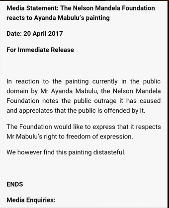 “Whilst we respect Mabulu’s freedom of expression, we find his work grotesque, inflammatory and of bad taste,” the African National Congress (ANC) on Friday said in a statement.