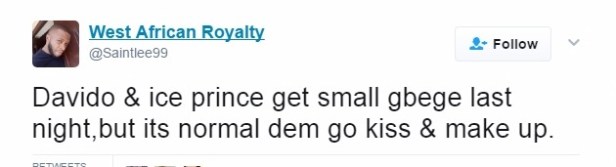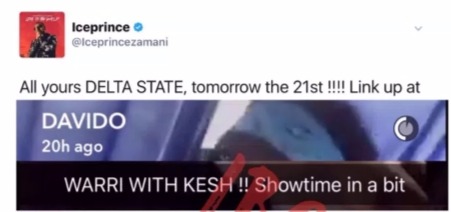 According to a Twitter user, Saint Lee, ‘Iceprince questioned Quilox club boss, Shina Peller on why he was told to manage with others when Davido rode in a salon car, and then Davido allegedly got furious’. Both put up status on their social media accounts confirming the would be at Delta before the alleged incident.