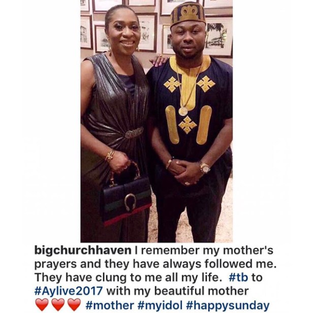 “I remember my mother’s prayers and they have always followed me. They have clung to me all my life. #tb to #Aylive2017 with my beautiful mother ❤❤❤ #mother #myidol #happysunday”!!