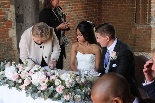 Their first wedding at the 16th CenturyLeez Manor in Chelmsford, Essex, goes off without a hitch – even after worrying messages from Tom’s best man Joshua when they miss their train to the venue after an all-night stag do.