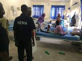 Meanwhile, NEMA Zonal Coodinator visited victims of the bomb blast at the Borno State Specialist Hospital . More photos after the cut.
