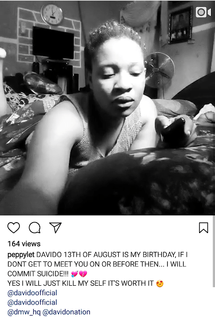 Girl vows to commit suicide if Davido doesn’t meet with her on or before August 13