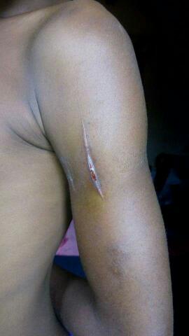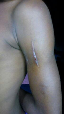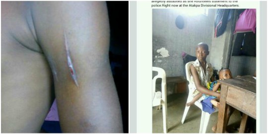 This pix is d one i took of her last week, when d madam stabbed her with a knife. Her offence? She took beans from d pot and ate bcos she was hungry. Ordinary beans oooo! And for her punishment, her madam beat her thoroughly, stabbed her with d kitchen knife, kicked her out naked, nd starved her for several days. She is just 11 yrs!