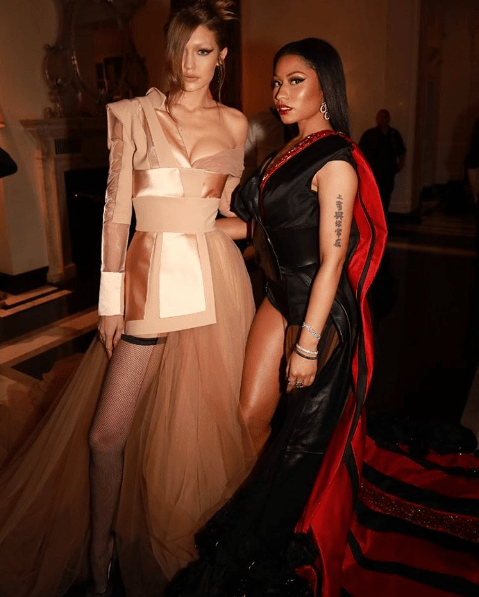 Nicki Minaj is one of the stars who made a stunning appearance at the 2017 Met Gala.The theme of this year’s gala is Comme des Garçons .She also posed with Halle Berry,Gigi Hadid,and the Olsen Twins.
