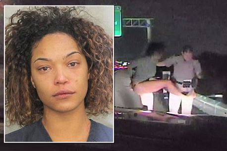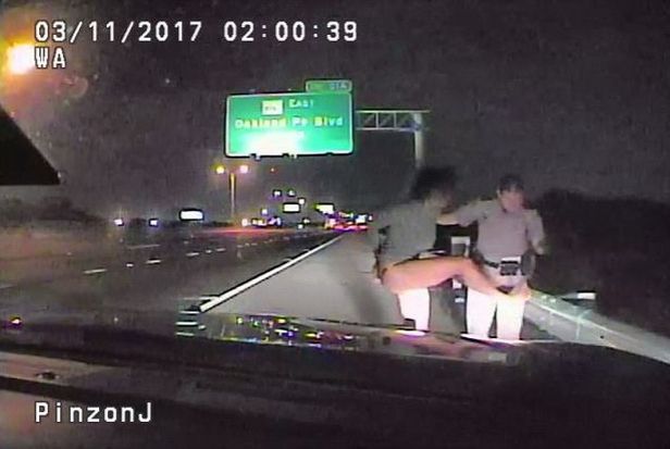 Wearing a skintight mini dress, the ex porn star can be seen pulling her dress up while talking to Florida Highway Patrol troopers.The troopers tried not to look as she hitched up her skirt.She said