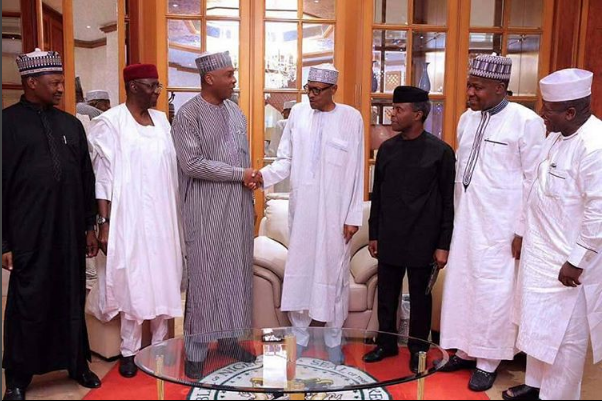 President Muhammadu Buhari received Vice President Yemi Osinbajo, Senate President Bukola Saraki, Speaker Yakubu Dogara and Zamfara Governor Abubakar Yari ahead of his trip to London last night for follow-up medical consultation with his doctors.
