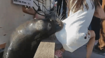 “The sea lion seemed pretty friendly at first. It jumped up to the girl, gave her a little greeting, but seconds after when she tried to sit down on the dock, it just came back up … and dragged her in the water.”