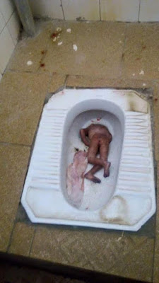 A University of Maiduguru, Borno state student was yesterday caught trying to force down the toilet a new born baby. She had given birth to the baby, but wanted to dispose her. She killed the little tot herself, then tried to force her down the toilet before she was caught.