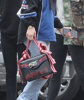 She was grasping a patterned leather Naga dragon leather shoulder bag from Gucci, which currently retails on the brand’s website for $3,700.