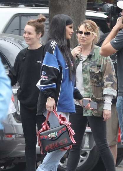 Kylie Jenner was photographed on Thursday paying a visit to her Kylie Cosmetics factory in Oxnard alongside her pal Jordyn Woods.