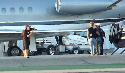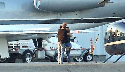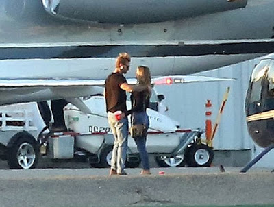 The 27-year-old pop princess appeared to hang out with the 26-year-old actor on the tarmac in Los Angeles.