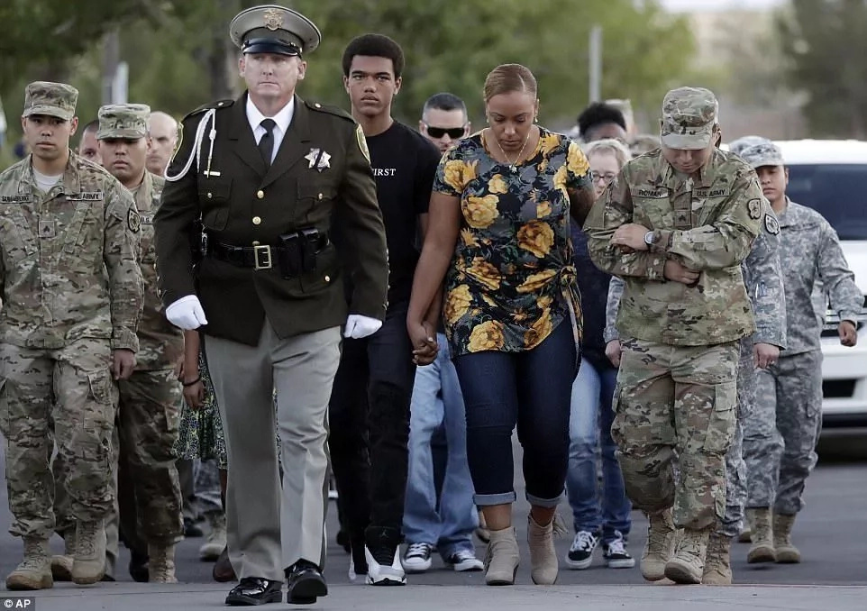 Present at the highly emotional ceremony was his wife Veronica, his 15-year-old son Ayzayah, 9-year-old daughter Savannah, friends, other relatives, colleagues from both the police force and the US army, security bosses and everyone else who knew Hartfield.