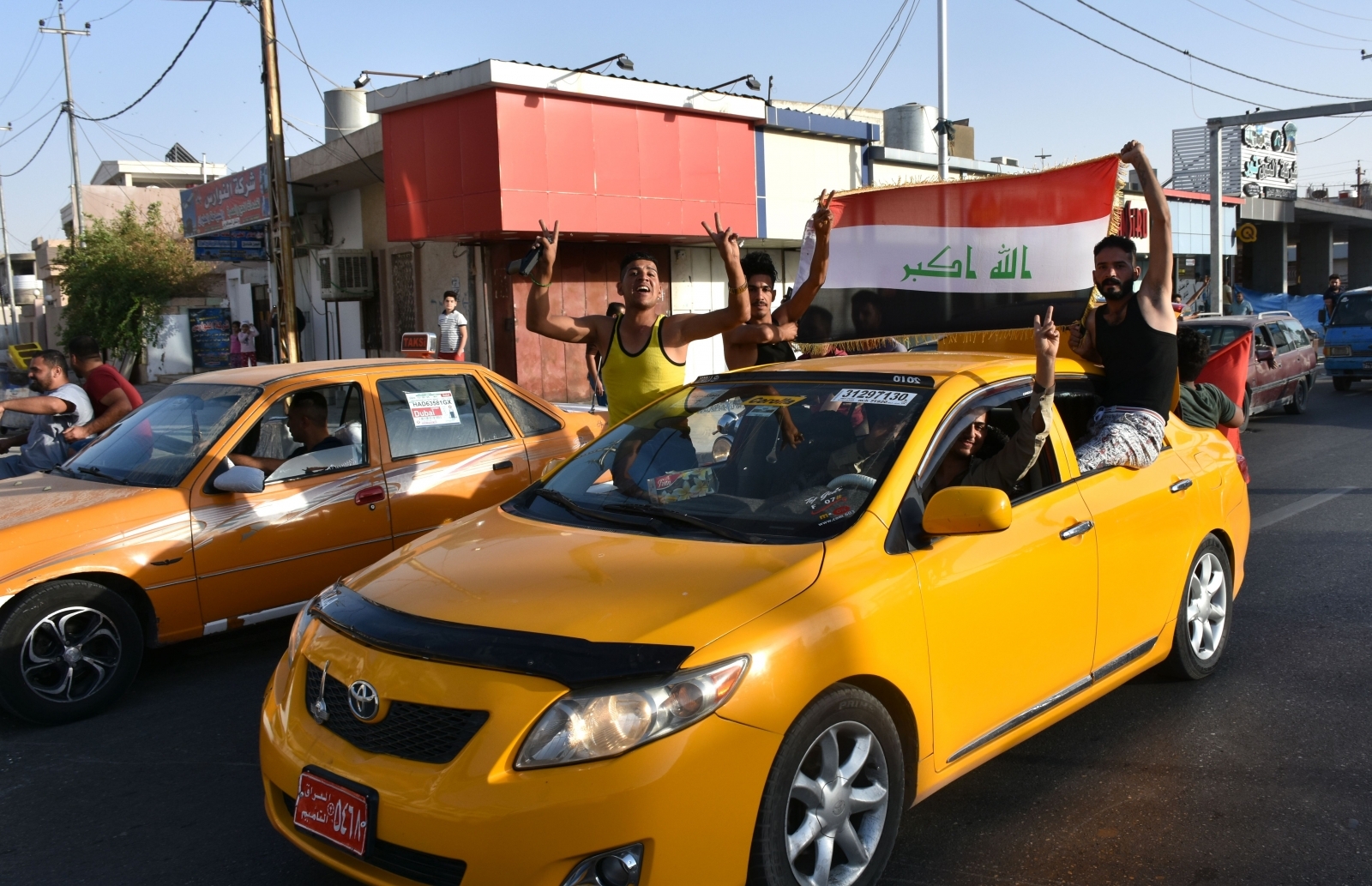 Iraqi Arabs and Turkmen celebrate after Iraqi forces retook Kirkuk