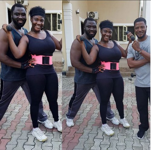 Nollywood actress Mercy Johnson and her husband, Prince Odi Okojie, worked out together at home.