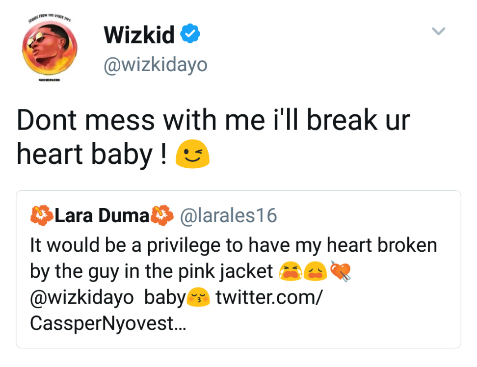 Nigerian singer Wizkid has warned a female fan crushing on him not to mess with him to avoid heartbreak.