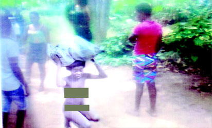 Nsini stripped by villagers and forced to carry the allegedly stolen cassava round the village