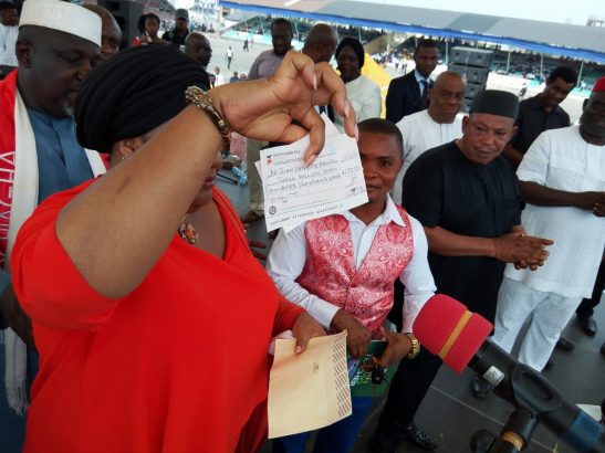 Dr Chigozie Ekenze, the best graduating student at the 2016 combined convocation ceremony of Imo State University IMSU, Dr Chigozie Ekenze, broke down in tears yesterday after he was gifted the sum of N13,700,000 (Thirteen million, seven hundred naira) by Governor Rochas Okorocha.
