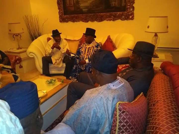Former President Olusegun Obasanjo met with former President Goodluck Jonathan and his wife Patience Jonathan at their Otueke residence.