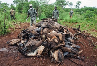 The conservation group says some of the dead vultures were mutilated, suggesting that they may have been killed for parts used in traditional medicine. The tusks of the poached elephant were seized and one suspect was detained.