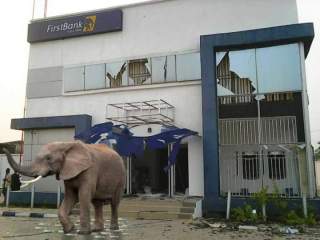 A live walking and physically okay ELEPHANT was seen today, few minutes ago at a First Bank Nigeria Branch at Seme Boarder – Lagos State, Nigeria at exactly 01:47pm in the bank premises after the the bank received a dispatch of money from the Bank Headquarters.