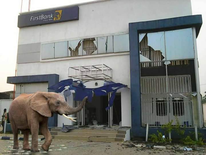 The ELEPHANT was said to appear just moments immediately the MONEY VAN left the bank premises. The route at which this ELEPHANT came into the bank is yet to be known.