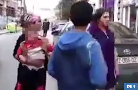 He is then dragged away by a friend as the ranting woman – still clutching onto the boy – pursues him down the street.