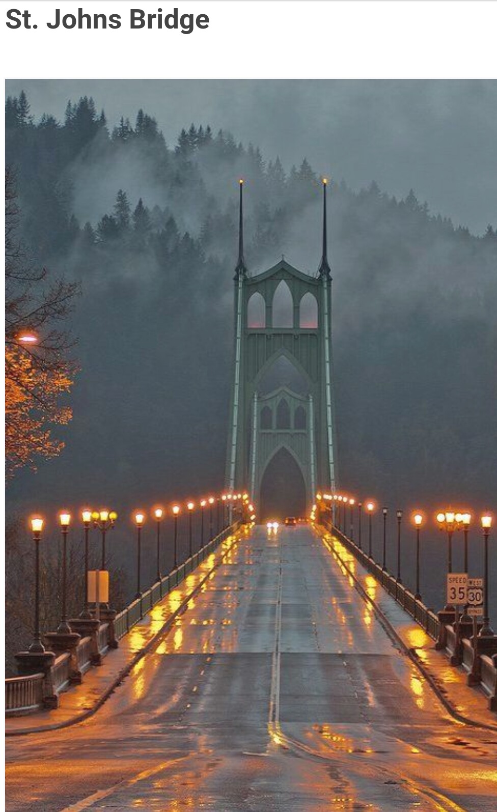 The St. Johns Bridge is a steel suspension bridge that spans the Willamette River in Portland, Oregon, USA, between the Cathedral Park neighborhood and the northwest industrial area around Linnton. It carries U.S. Route 30 Bypass. It is the only suspension bridge in the Willamette Valley and one of three public highway suspension bridges in