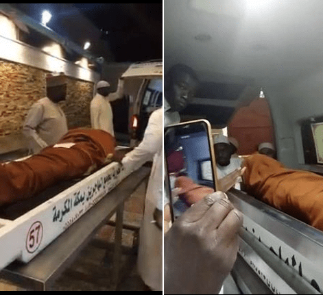 His corpse was pictured being conveyed into an ambulance ahead of his burial with family and friends present.