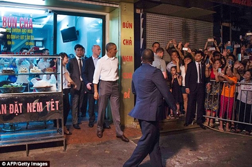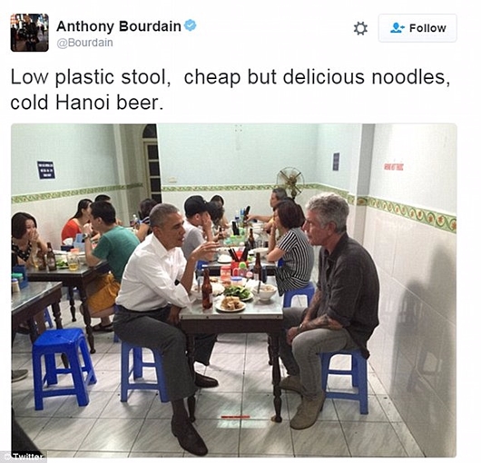 Obama was pictured having dinner at the Bun Cha Huong Lien restaurant with celebrity chef, Anthony Bourdain in May 2016