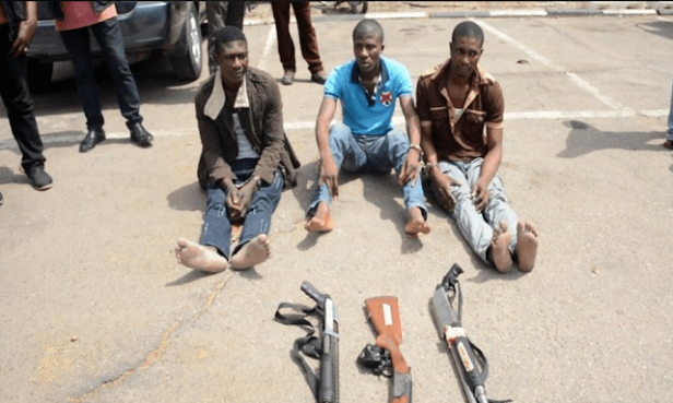 Here are photos of the suspects paraded and the weapons allegedly recovered from them during separate arrests.