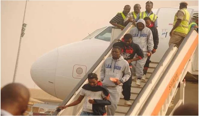 It was gathered that the returnees arrived the Murtala Muhammed International Airport, Lagos, aboard a chartered flight operated by Buraq Airline with registration number 5A-DMG Thursday night.