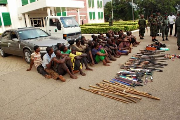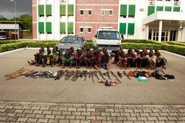 He said items recovered from them include 26 cartridge dane guns and 49 cutlasses and knives. Jajira added that all the suspects claimed to be on the lookout for cattle rustlers who stole their cows. Captain Jajira said the suspects would be handed over to the police for further investigation.