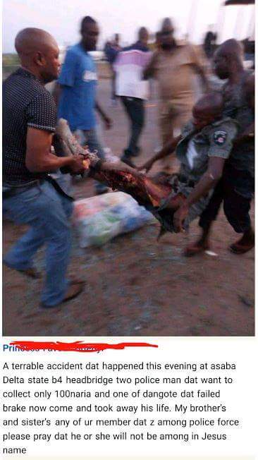 The social media user, who is also a witness said the policemen were on the road trying to collect N100 bribe from motorists when the unfortunate incident occurred.