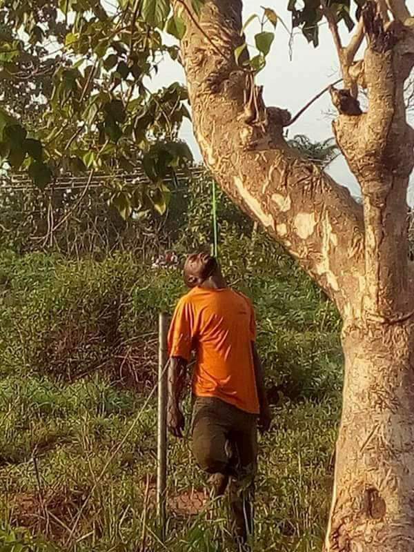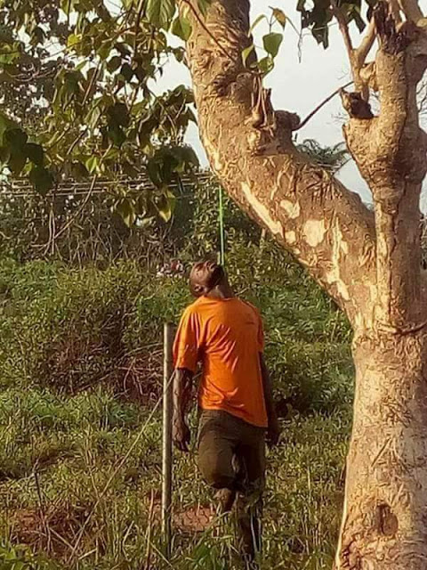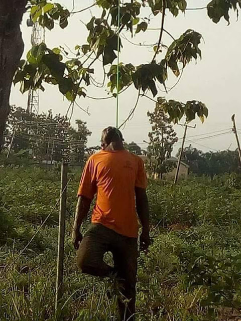 According to the story shared by Chizzy,a man was found today hanging on a tree in Ishieke,Ebonyi state.It is unclear whether he killed himself or by other people.Below is what Chizzy wrote….