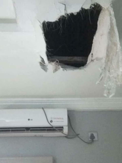 Unfortunately he slept off after some marathon s*x and the babe broke the ceiling and jumped down through one of the rooms and scale the fence while Uncl@d.