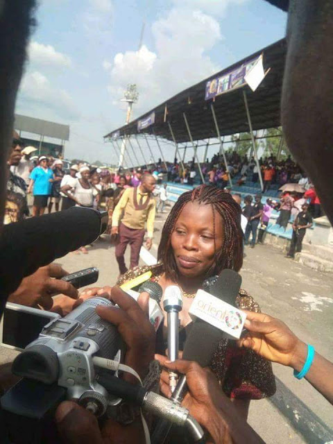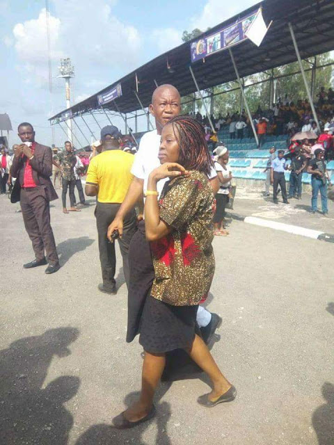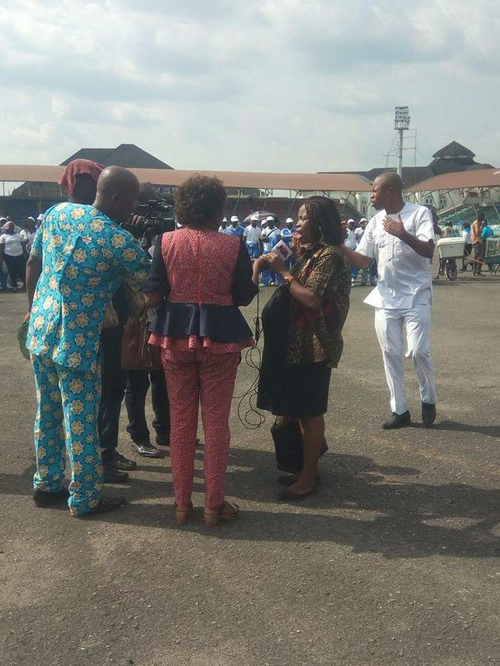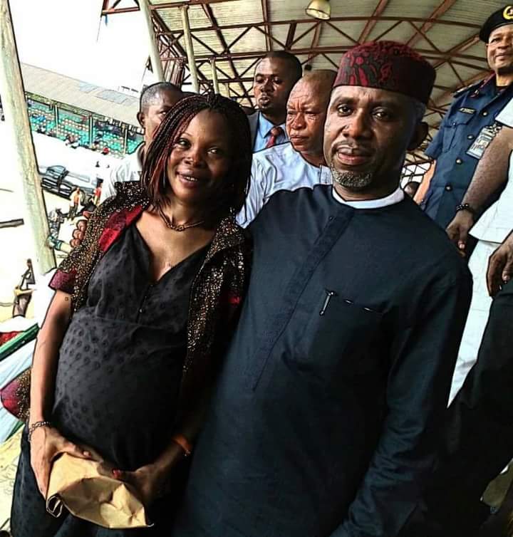 His Excellency Owelle Dr. Rochas Anayo Okorocha,the Executive Governor of IMO State,this afternoon during the Imo Workers Day Celebration at Heroes Square Owerri, surprised a pregnant woman who despite being pregnant defiled all odds and took part in the Match Pass with her Co-Workers.