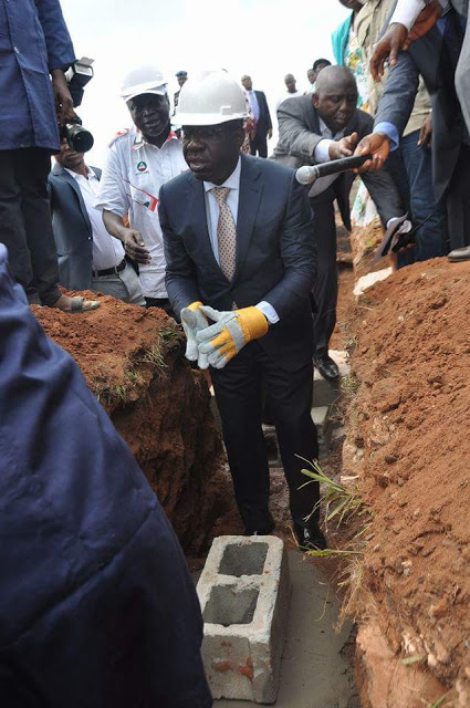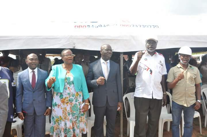 Edo State Governor, Mr. Godwin Obaseki (middle) after laying the foundation for the proposed State Labour House Complex, in Ikpoba Hill, Benin City, Edo State.