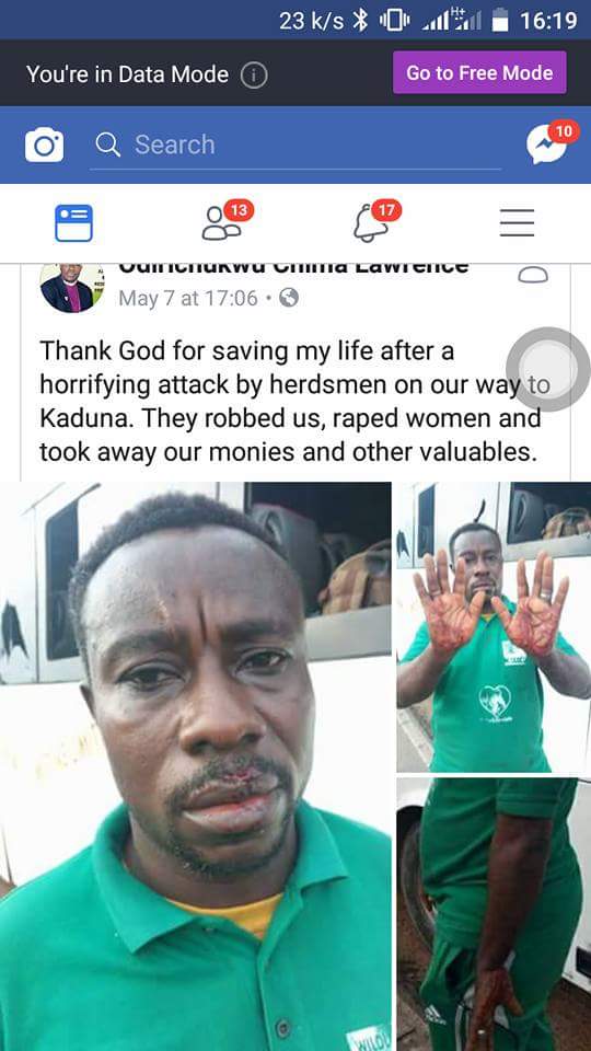 Uncategorized A big testimony: Thank God for saving my life Date: May 9, 2018Author: daybreaknewonline 0 Comments A big testimony: Thank God for saving my life after a horrifying attack by robbers on our way to Kaduna. They robbed us, raped women and took away our monies and other valuables. Facebook Share this: Share on X (Opens in new window) X Share on Facebook (Opens in new window) Facebook Share on LinkedIn (Opens in new window) LinkedIn Share on Pinterest (Opens in new window) Pinterest Share on Telegram (Opens in new window) Telegram Share on WhatsApp (Opens in new window) WhatsApp Email a link to a friend (Opens in new window) Email Like Loading... Related