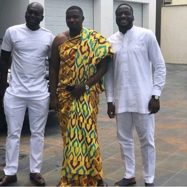 The dark, lovely and handsome actor can be seen rocking a Kente cloth with Military men guarding him.