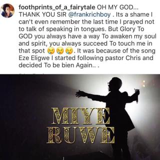 Uncategorized Song: Miye Ruwe by Frank Edward do miracles as people testify see testimonies. Date: May 18, 2018Author: daybreaknewonline 0 Comments Song: Miye Ruwe by Frank Edward do miracles as people testify see testimonies. See the testimonies, Share this: Share on X (Opens in new window) X Share on Facebook (Opens in new window) Facebook Share on LinkedIn (Opens in new window) LinkedIn Share on Pinterest (Opens in new window) Pinterest Share on Telegram (Opens in new window) Telegram Share on WhatsApp (Opens in new window) WhatsApp Email a link to a friend (Opens in new window) Email Like Loading... Related