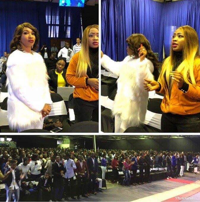Tonto Dikeh ministers to over 7,000 members of ECG Church in South Africa, We all thought Tonto Dikeh and her talk of being born again was a joke, but below are pictures of her ministering to about 7,000 people at Shepherd Bushiri’s church in South Africa.