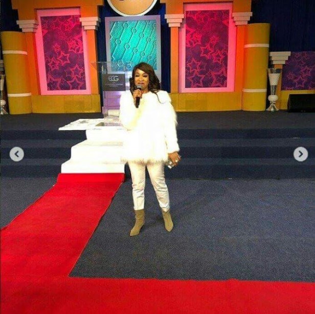 The divorced mother of one who is proud of undergoing plastic surgery shared pictures of herself holding a microphone at the altar as she ministered to the congregation.