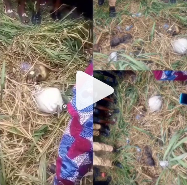 According to reports, a lady who claims to be mad, was also found with a phone and some dollar notes at the den. Upon further inspection, a human skull, bones and machetes were retrieved from the den. Investigation is still going on as at the time of filing this report.#