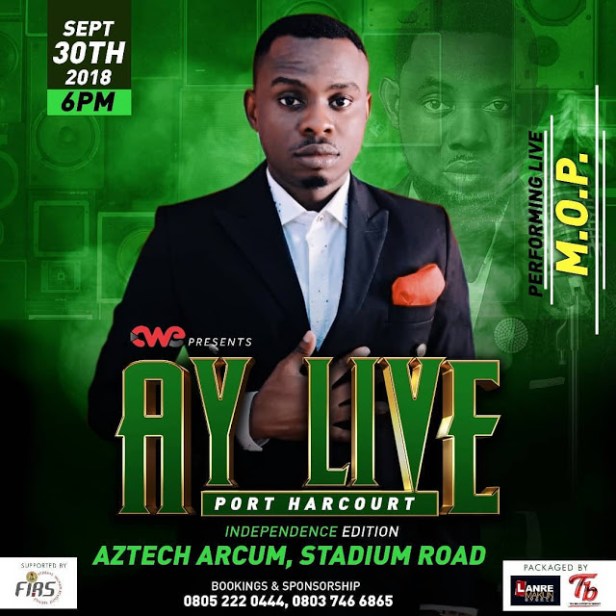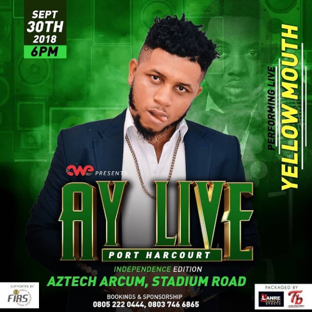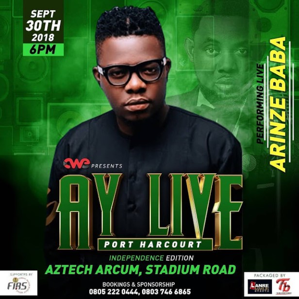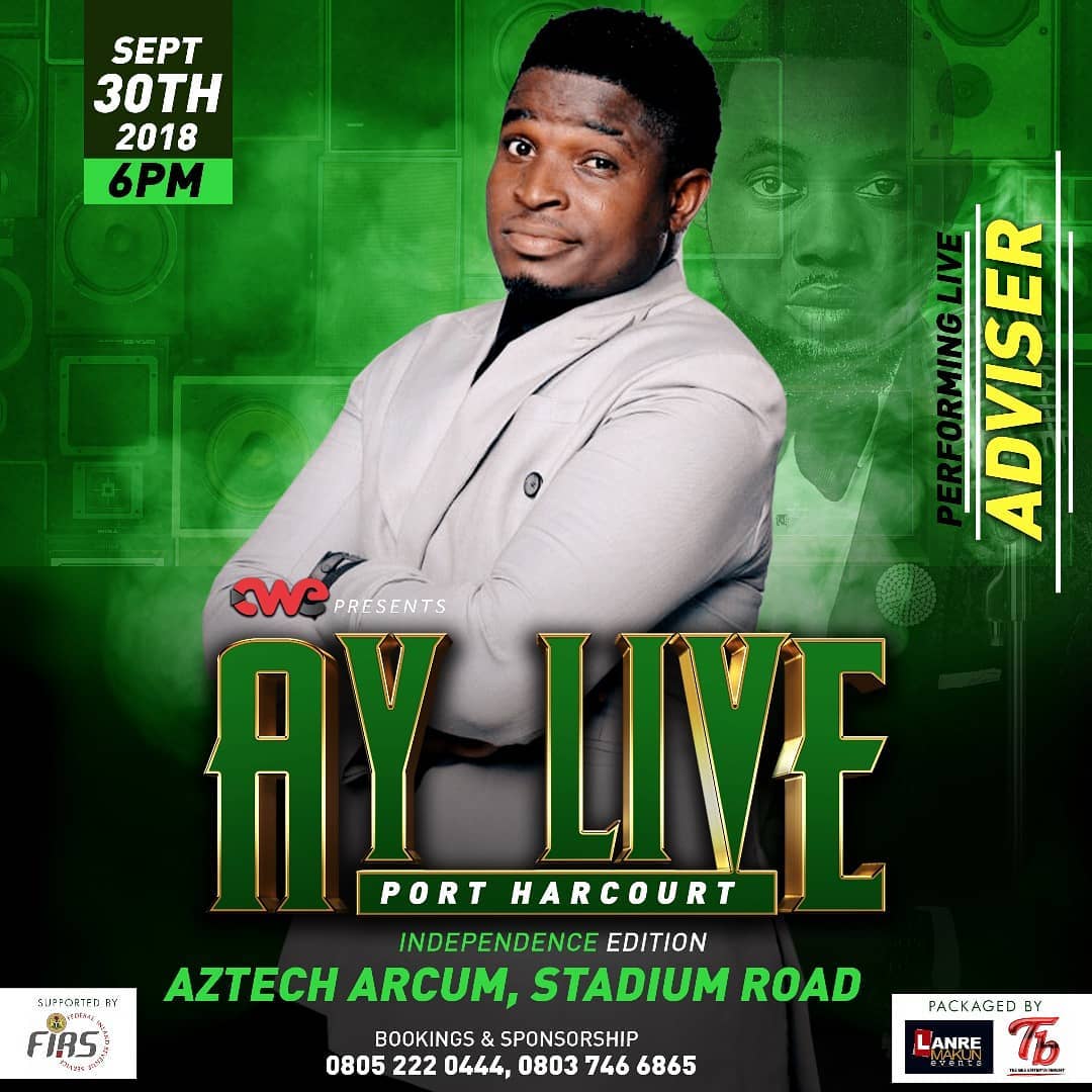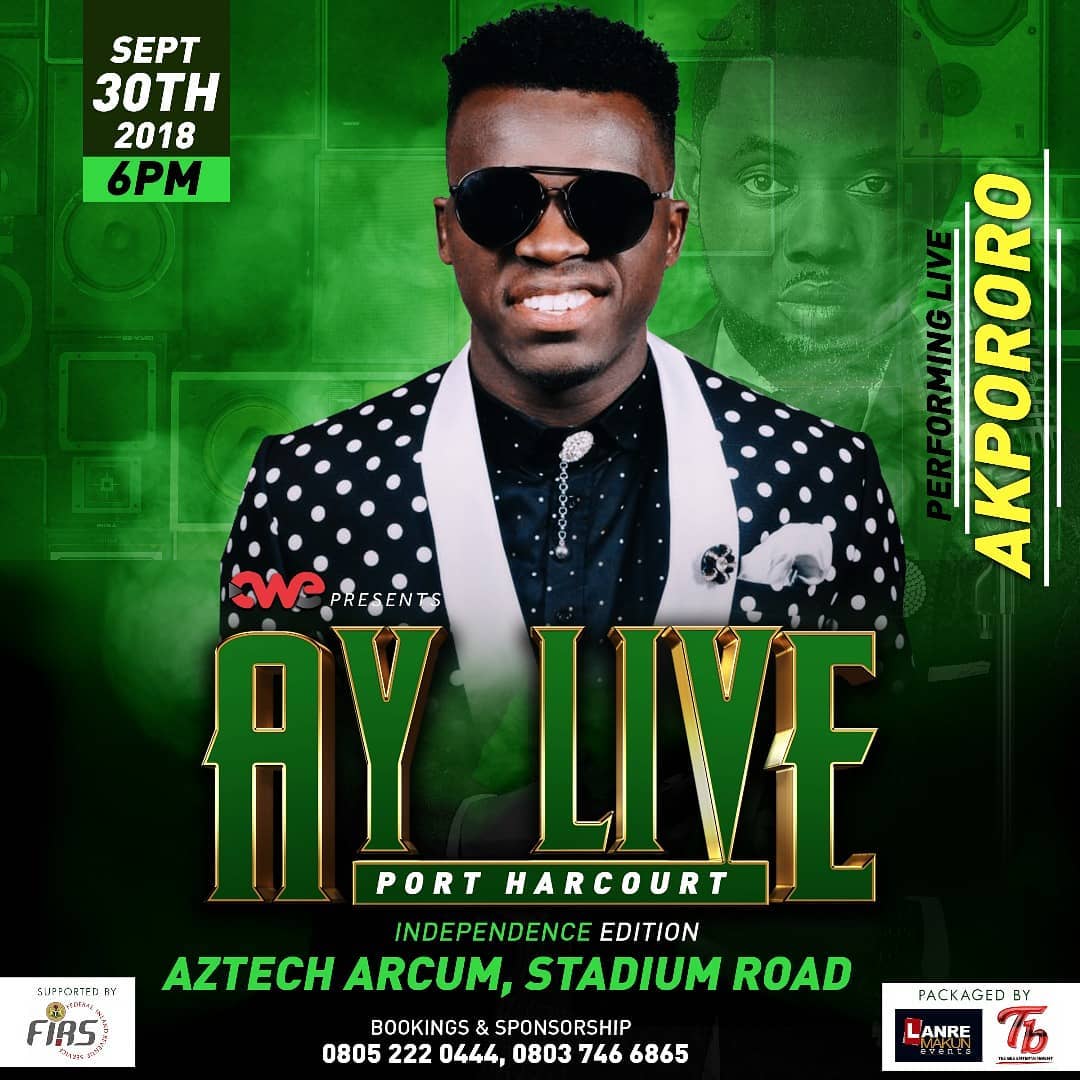 The biggest comedy show in Nigeria is ready to take over the Garden once again with it’s usual Independence edition of AY Live on September 30. The night will be featuring leading A-list comedians like I GO DIE, GORDONS, AKPORORO, ACAPELLA, ARINZE BABA, KELVIN SAPP, KO BABA, ADVISER, YELLOWMOUTH AND A HOST OF OTHER MIND BLOWING COMEDIANS